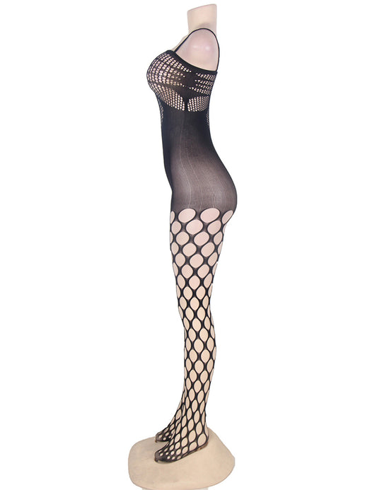 Black Sheer Hollow Out Off Shoulder Fishnet Bodystockings