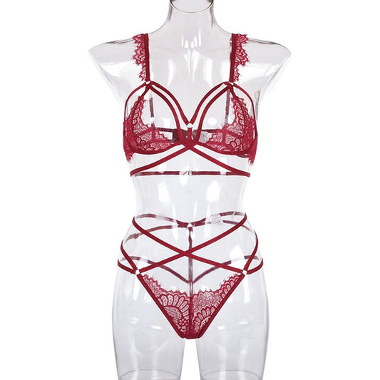 Soft Floral Lace Underwire Garter Lingerie Set